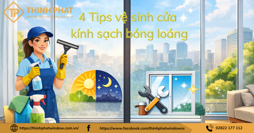 Tổng hợp 4 tips vệ sinh cửa kính hiệu quả tại nhà giúp loại bỏ bụi bẩn, vết nước và dầu mỡ nhanh chóng, an toàn, dễ áp dụng cho mọi không gian sống hiện đại. Tuy nhiên, sau một thời gian sử dụng, bụi bẩn, vết nước và dầu mỡ dễ bám lại khiến mặt kính mờ đục. Vậy nên, qua bài viết dưới đây, Thịnh Phát sẽ tổng hợp 4 tips hiệu quả giúp bạn làm sạch kính nhanh gọn và an toàn tại nhà.