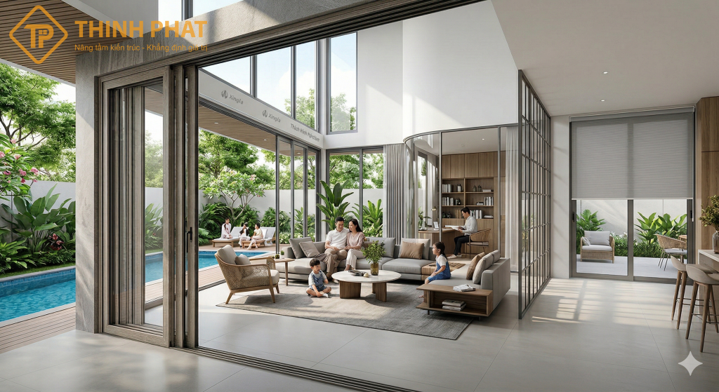 Sử dụng vách nhôm Xingfa phòng khách đang là xu hướng kiến trúc bùng nổ năm 2026. Giải pháp này giúp xóa bỏ cảm giác chật chội và mang thiên nhiên vào tổ ấm. Thịnh Phát Window tự hào mang đến những hệ vách kính sang trọng, bền bỉ và báo giá tốt nhất thị trường.